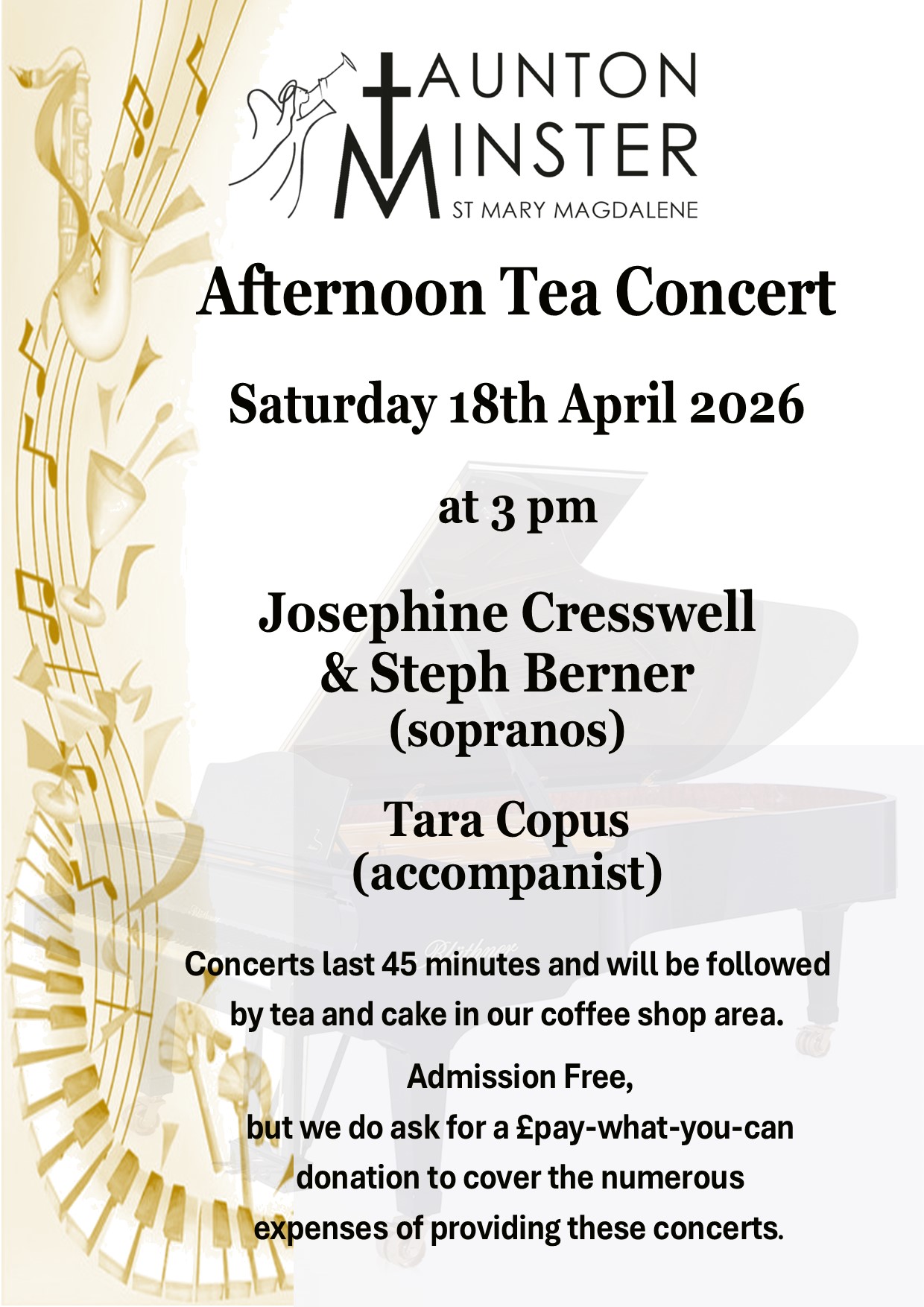 Come and listen to sopranos Josephine Cresswell and Steph Berner with accompanist Tara Copus. These concerts last 45 minutes and will be followed by tea and cake in our café area. Admission free but we do ask for a £pay-what-you-can donation to cover the numerous expenses of providing these concerts.