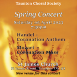 | 1Taunton Concert BandTaunton Concert BandTime: 7:30 pm - 9:30 pm Spring Concert--exciting new music solos and popular selections to please everyone. Tacchi Morris Centre, Taunton Map Taunton Choral SocietyTaunton Choral SocietyTime: 7:30 pm - 12:00 am A choral concert to celebrate the coronation of King Charles III
